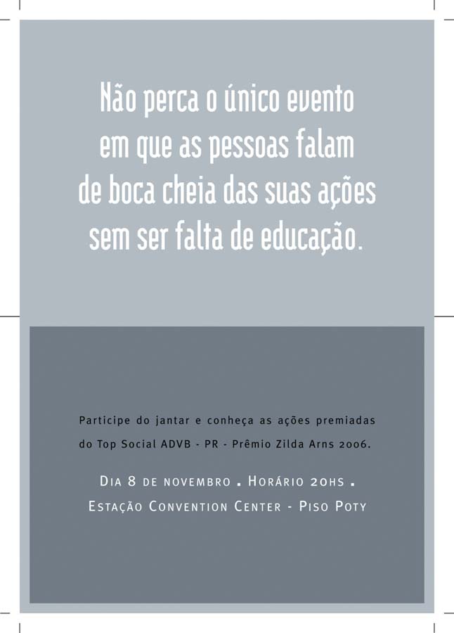 - Os dez melhores projetos de responsabilidade social do Paraná foram reconhecidos em 8/11/2005, durante o evento de premiação do Top Social – Prêmio Zilda Arns.