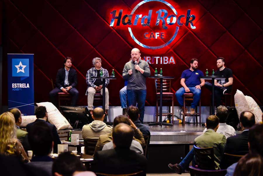 Edição “Estrela ADVB – Cervejeiros” trouxe num mesmo painel os fundadores de 5 cervejarias curitibanas (Alexandro Winocur, da Way Beer, Francisco Seegmuller, da Bastardes Brewery, Iron Mendes, da Maniacs Brewing, Ronaldo Flor, da Gauden Bier e Samuel Cavalcanti, da Bodebrown.